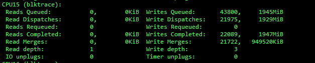 Write depth: The number of write requests that are currently in the block layer's request queue.