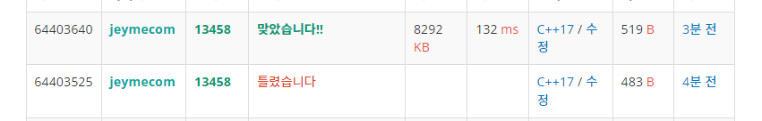 13458 문제는 수학 문제이다. 간단한 문제인데 한번 틀렸다.