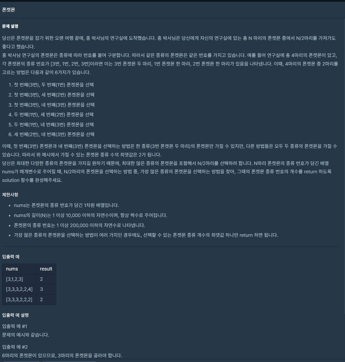 프로그래머스 폰켓몬 c++ unordered_map 해시